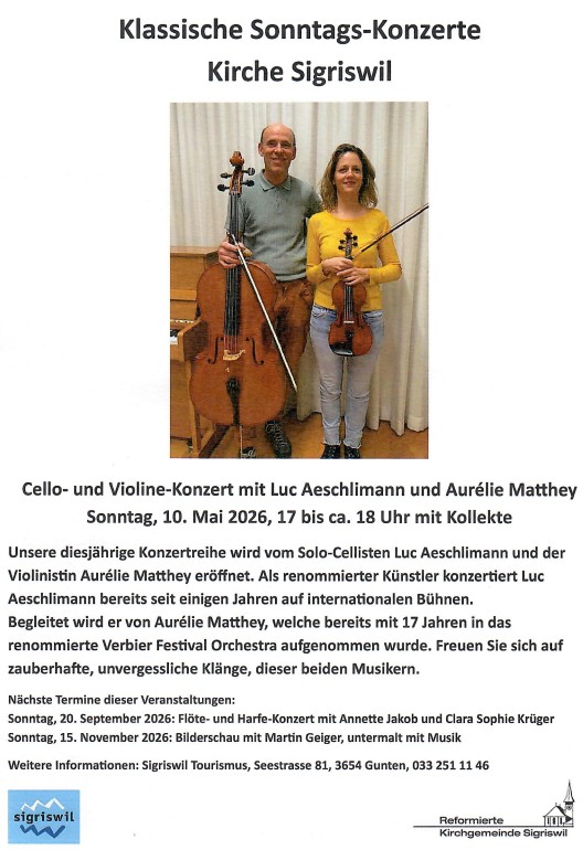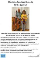 Cello- und Violine-Konzert mit Luc Aeschlimann und Aurélie Matthey