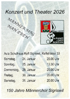 Spass und Unterhaltung garantiert! Der engagierte Männerchor Sigriswil vespricht mit seinen Liedervorträgen und dem anschliessenden Theaterstück einen Abend für Herz und Gemüt. Im Anschluss an die Vorstellung sind alle Gäste herzlich willkommen in der Festwirtschaft.