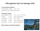 Öffnungszeiten über Ostern vom 3. - 6. April 2026